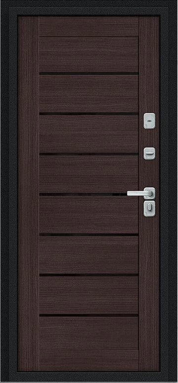 Дизайнерская входная Дверь Браво Thermo Техно Д2/BChrome Букле черное/Wenge Melinga класса Люкс с несколькими листами стали, звукоизоляцией и теплоизоляцией. Утепленный короб и полотно защитят от сквозняков и шумов. Модель не только надежная, комфортная, защищенная и высочайшего качества, но и очень красивая! Будет отлично сочетаться с интерьером дома, квартиры или офиса. Сейчас действует выгодное предложение по цене: 53 250 руб.